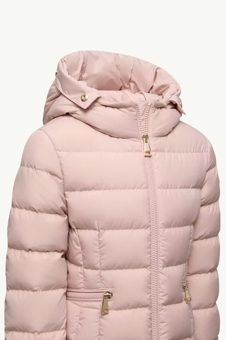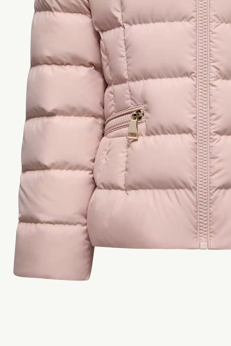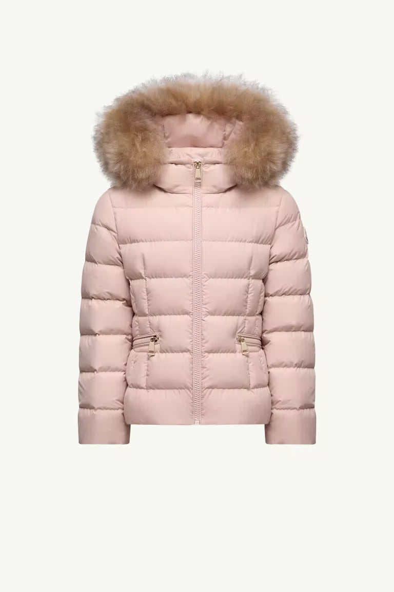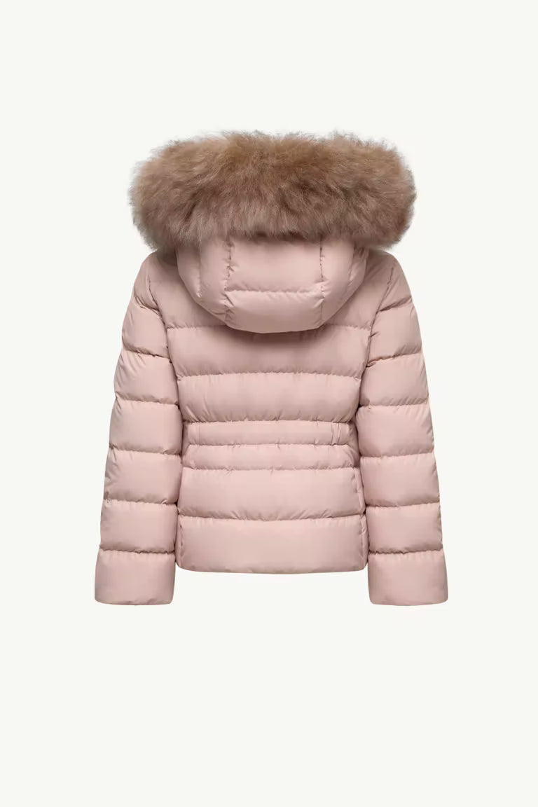 The Boedette down jacket pairs a girly aesthetic with cozy details for maximum warmth and protection. The puffer is crafted from polyester with a luxurious shearling trim on the hood, a versatile detail that can be detached depending on the weather.