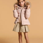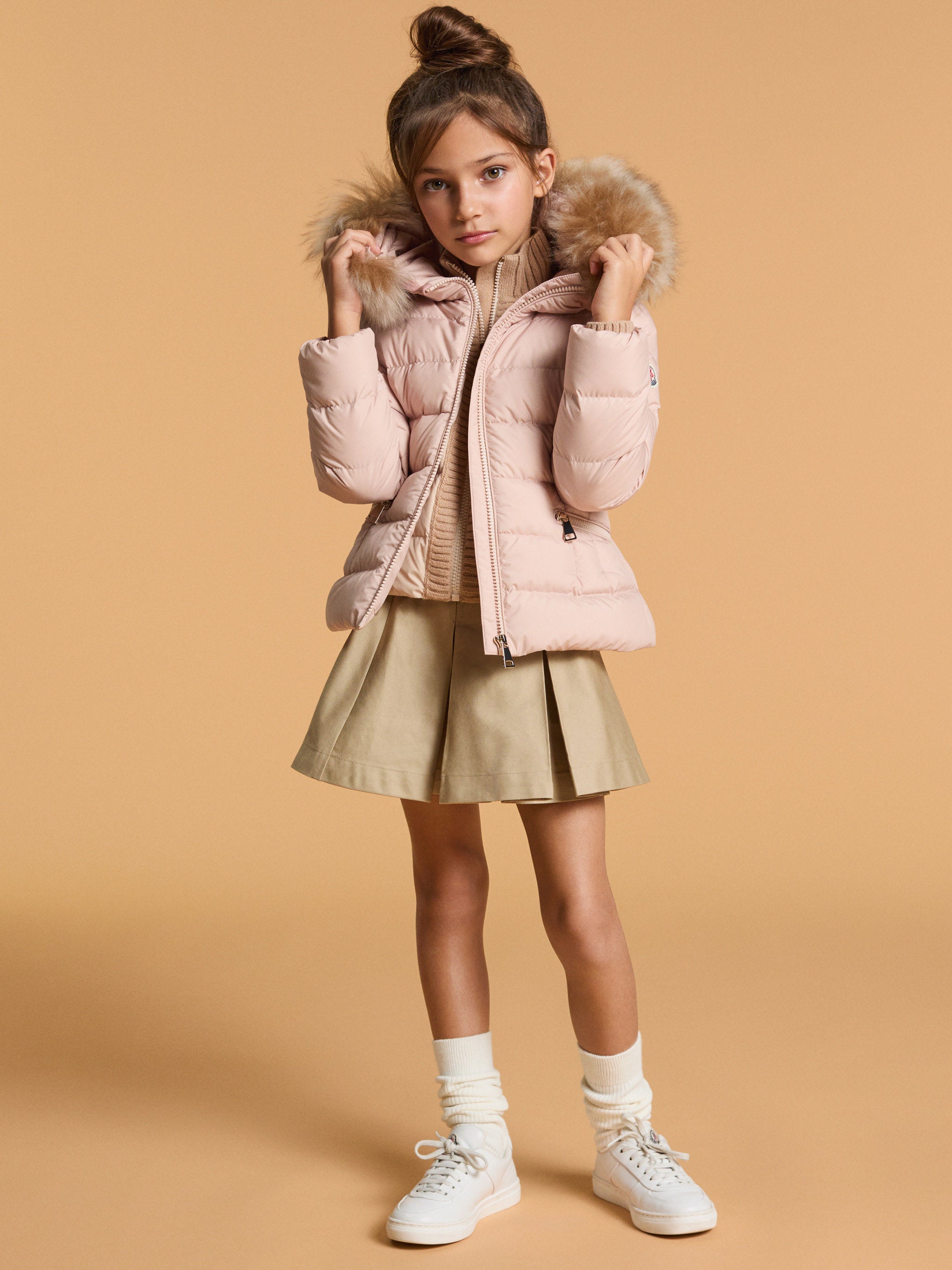 Perfect for cold weather adventures, the Boedette hooded down jacket for girls is enhanced with plush shearling.
