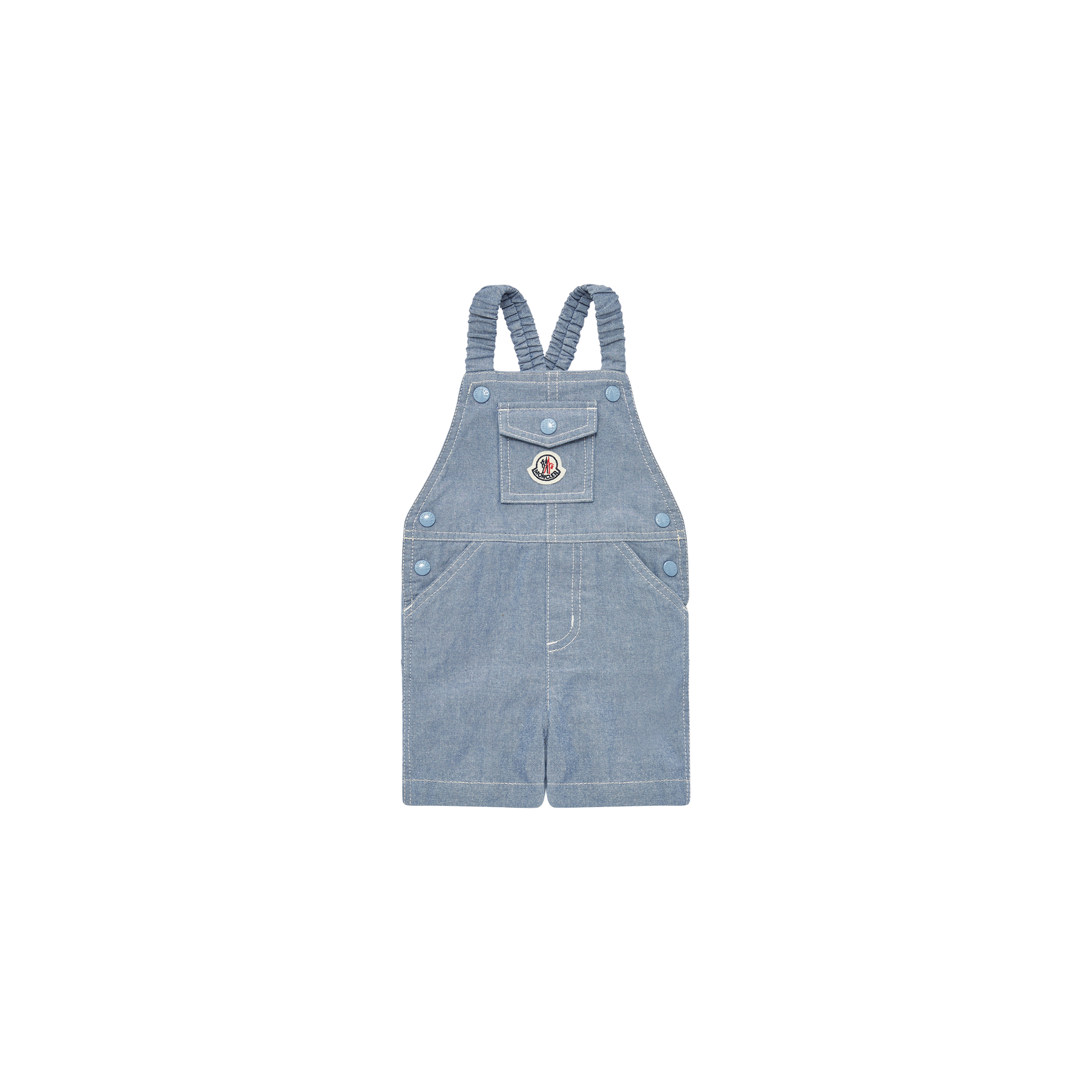Crafted from soft cotton chambray, these overalls feature an elastic waistband and stretch suspenders for all-day comfort. A nod to Moncler's signature style, the design includes a logo pocket.