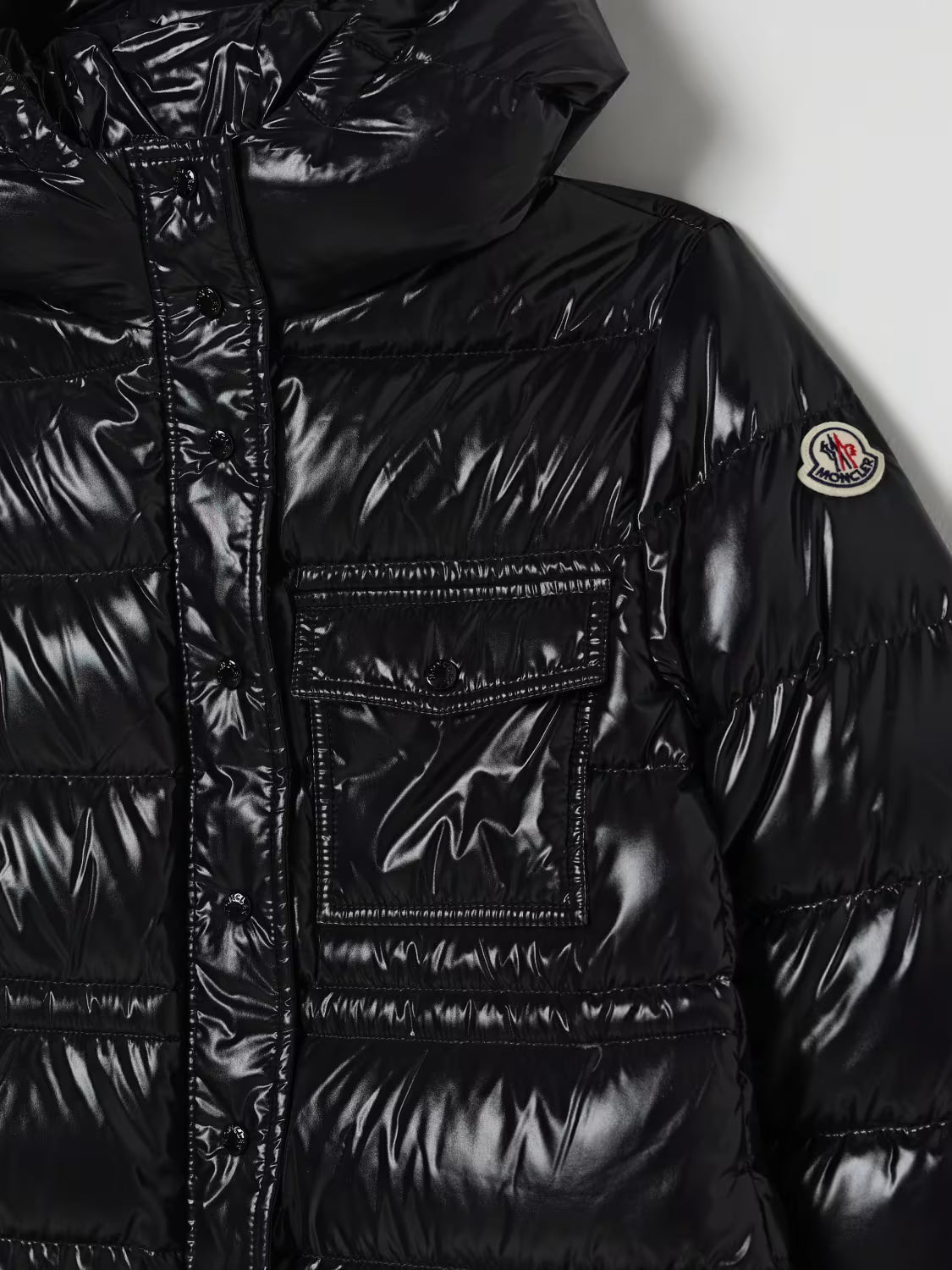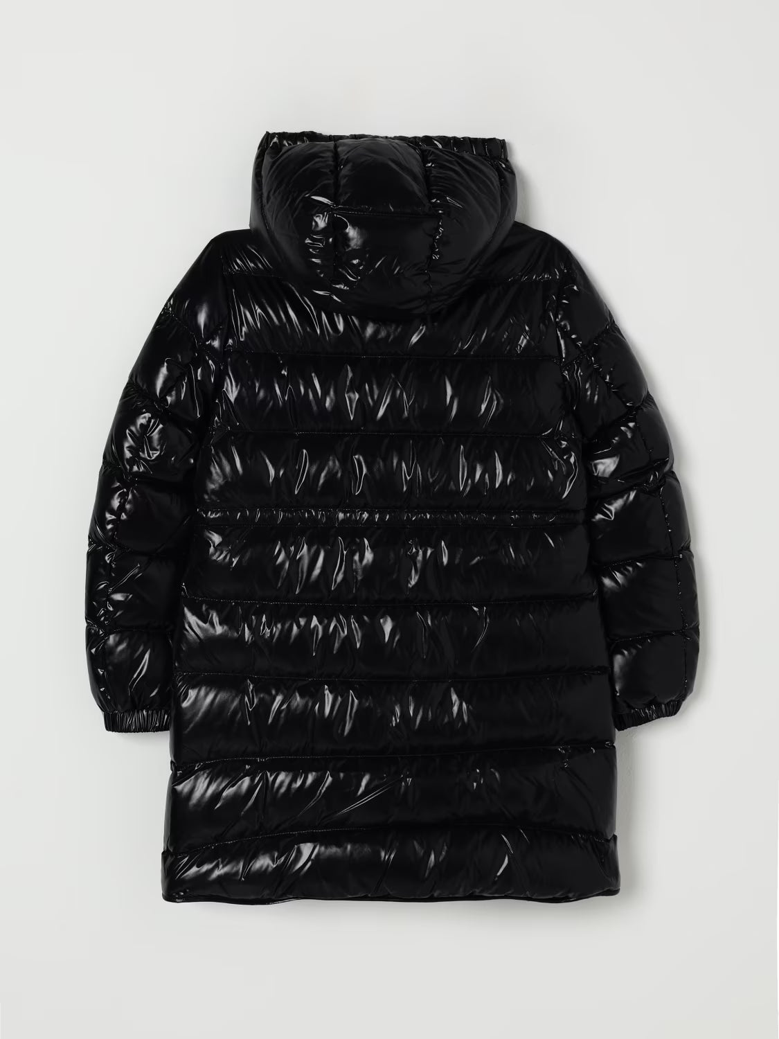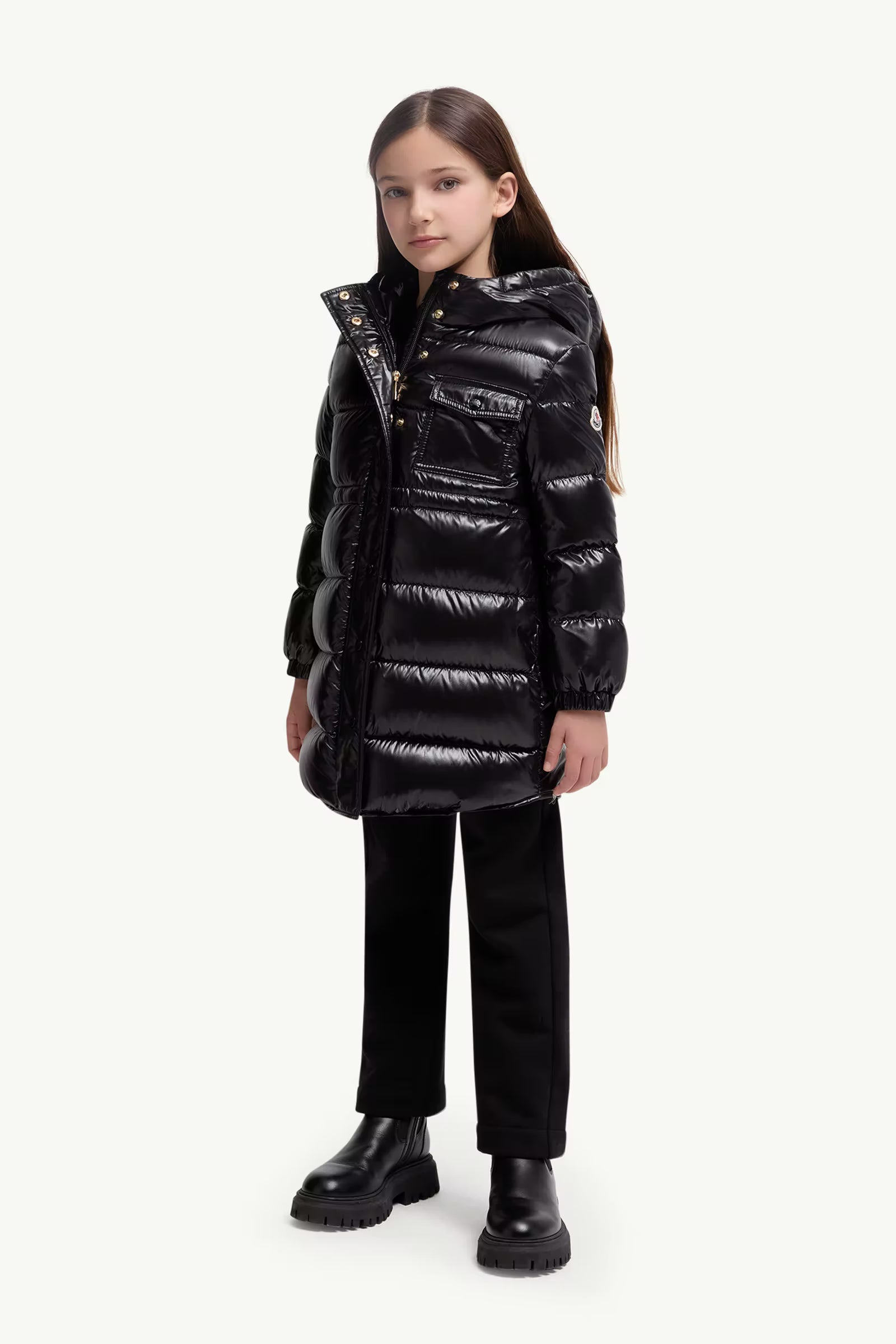 Fun and girly, the Dacca down jacket is crafted from nylon laqué - a breathable down proof fabric with a water-repellent finish. The hooded puffer features an adjustable waistband to allow for freedom of movement during play while a fit and flare shape completes the coat.