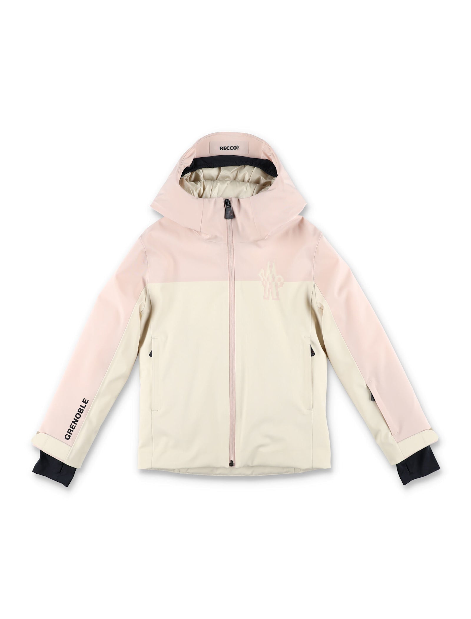 Bouvreuil Jacket By Moncler Grenoble. Featuring: Regular Fit Waterproof Shell Adjustable Hood With High Collar Long Sleeves With Internal Stretch Cuffs Full Front Zipper Closure With Chin Guard Two Front Zip Pockets Recco® Rescue Reflector Color Block Design With Moncler Grenoble Branding