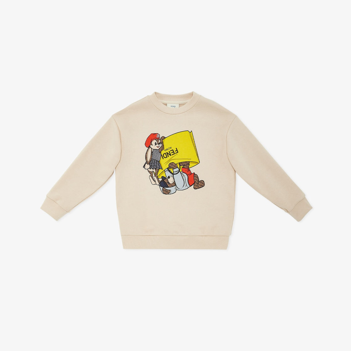 Beige, basic crew-neck junior sweatshirt with Fendi pets print.