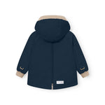 Classic MINI A TURE winter anorak with 10-year guarantee for the smallest children. Wind- and waterproof, breathable, and tested to keep warm down to -25 degrees Celsius. The anorak has a soft rib around the face as well as on the wrists. Large front pocket with snap buttons. The anorak has a soft and warm fleece lining ensuring that the child can keep warm for hours outdoors. The zipper at the back goes all the way up on the hood, making the anorak easy to get on and off even on very small children. MINI A TURE signature reflex star in the pocket.