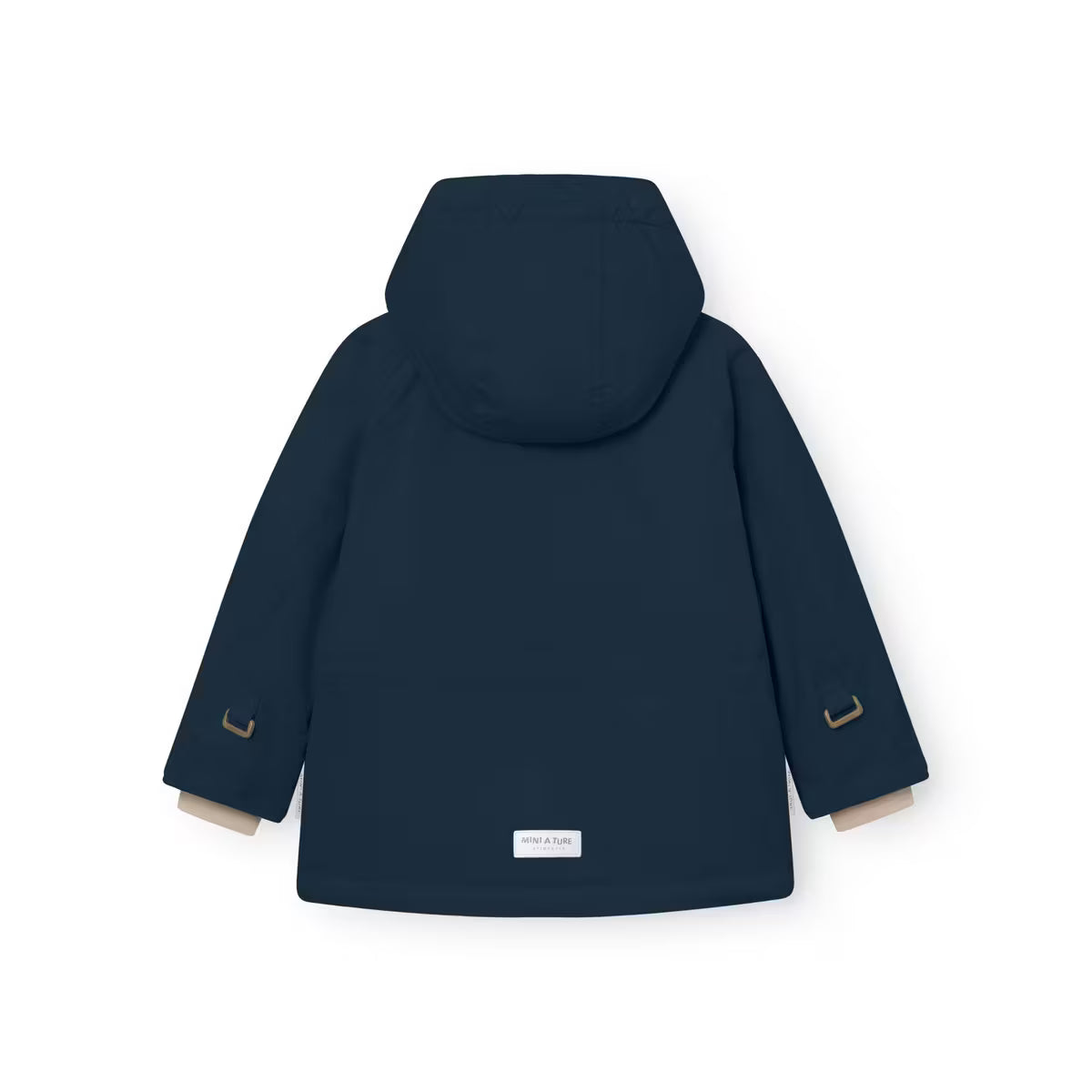 Iconic MINI A TURE winter jacket with 10-year guarantee. The jacket is wind- and waterproof, breathable, and tested to keep warm down to -25 degrees Celsius. Featuring a detachable hood that can be adjusted with an elastic string to keep the wind out. Improved sleeve fitting to secure the freedom to move as well as snow cuffs at the wrists with thumb opening. The waist is adjustable from the inside by an elastic string. The jacket has a soft, warm fleece lining. Sizes up to and including size 86 cm (18m) have a rib around the neck, while the larger sizes have a regular collar. MINI A TURE signature reflex star in the right pocket.
