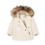 Iconic MINI A TURE winter jacket with 10-year guarantee. Wind- and waterproof, breathable, and tested to keep warm down to -25 degrees Celsius. The jacket opens at the front by a hidden, slanted zipper and has a soft fleece lining. Featuring a detachable hood that can be adjusted with an elastic string to keep the wind out, the real fur can be removed by a hidden zipper. The sleeves have improved fitting securing the freedom to move as well as snow cuffs at the wrists with thump opening. MINI A TURE signature reflex star in the front pocket.