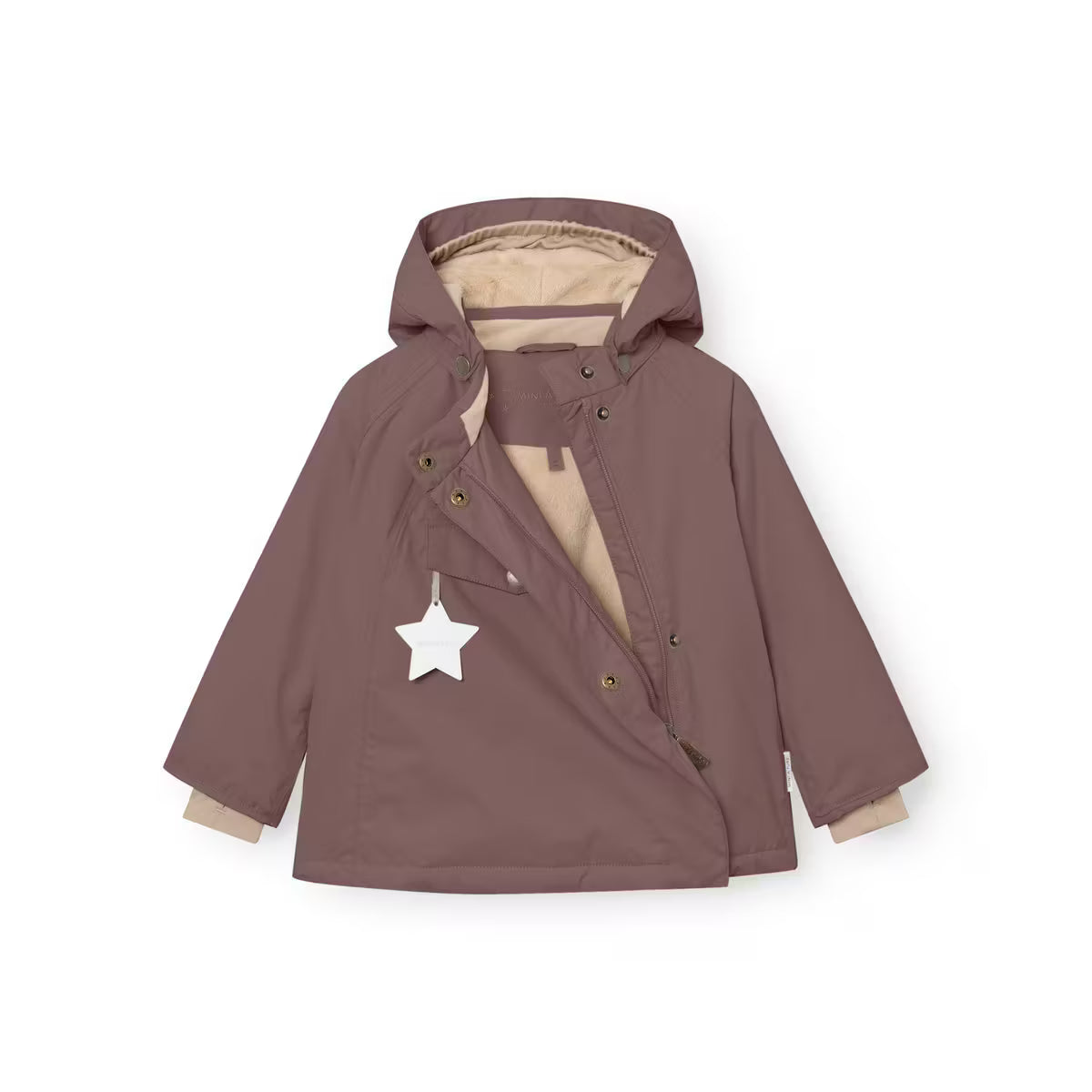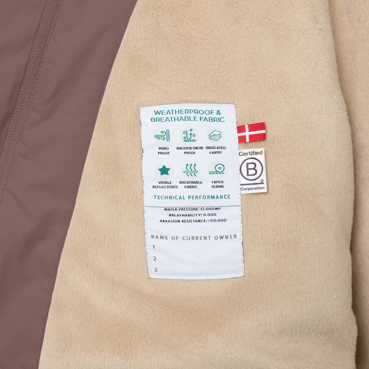 Iconic MINI A TURE winter jacket with 10-year guarantee. Wind- and waterproof, breathable, and tested to keep warm down to -25 degrees Celsius. The jacket opens at the front by a hidden, slanted zipper and has a soft fleece lining. Featuring a detachable hood that can be adjusted with an elastic string to keep the wind out. The sleeves have improved fitting securing the freedom to move as well as snow cuffs at the wrists with thumb opening. The waist is adjustable from the inside with an elastic. Sizes up to and including 86cm/18m have a rib around the neck, while the larger sizes have a regular collar. MINI A TURE signature reflex star in the front pocket.